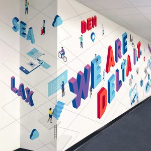 My design style is bold and clean, combining color and typography.